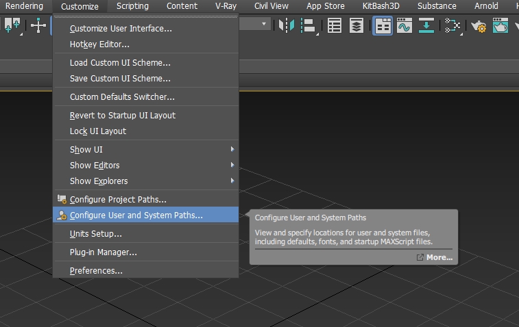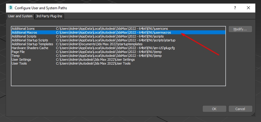#3. In 3dsMax, go to Customize/Configure User and System Paths, relink “Additional Macros” to that copied “usermacros” folder.
